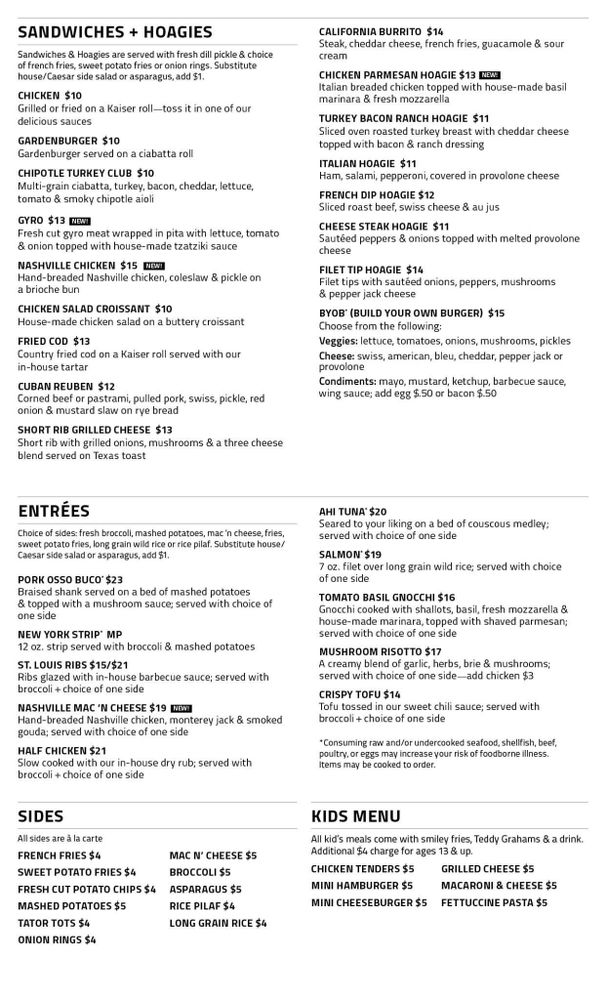 Toppings: lettuce, tomatoes, onions, mushrooms, pickles, banana peppers, jalapenos Cheese: swiss, american, bleu, cheddar, pepper jack or provolone Condiments: mayo, mustard, ketchup, barbecue sauce, wing sauce; add egg or bacon for an additional charge